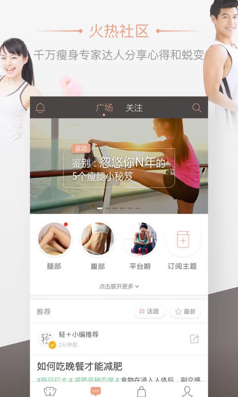 轻加减肥app,国民女神高圆圆参与投资,新晋励志女星王艺诺代言,和女神一起瘦,一起享受轻生活 要减肥,上轻加!欢迎来到轻一点的世界! 超2000万轻生活主义者在此蜕变! 少数人才能做到的方案,我们不做! 少数人才能坚持下来的方案,我们不做! “看上去很美”实则然并卵的方案,我们不做! 我们,做什么? 轻加减肥app运动中心专家团联合体育总局《健身教练培训教材》编委吴强教练等,研发的轻运动任务系统,根据你的身体和运动 数据智能调整你的运动任务,让你拥有私人教练级服务。 轻加减肥app营养中心专家团与中国科协特聘营养学科学传播首席专家范志红教授等,研发的轻美食系统,烹饪简单又健康,好吃 又减脂。 运动、饮食、社区、轻Mall给你全方位身材减肥计划,减脂、瘦身、塑形、运动、跑步、计步器、健身、美体、易瘦体质 形成,蜕变在轻加减肥app! 微博微信大V在轻加减肥app社区召唤你分享轻的无限可能! 轻加减肥app爱你,就像,你爱你自己。