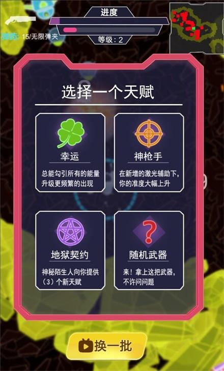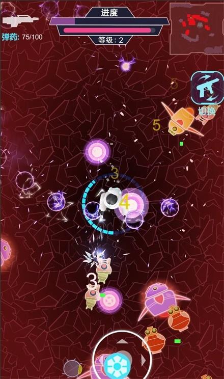 无需玩家瞄准射击,只需要收集子弹和道具,寻找敌人自动射击;