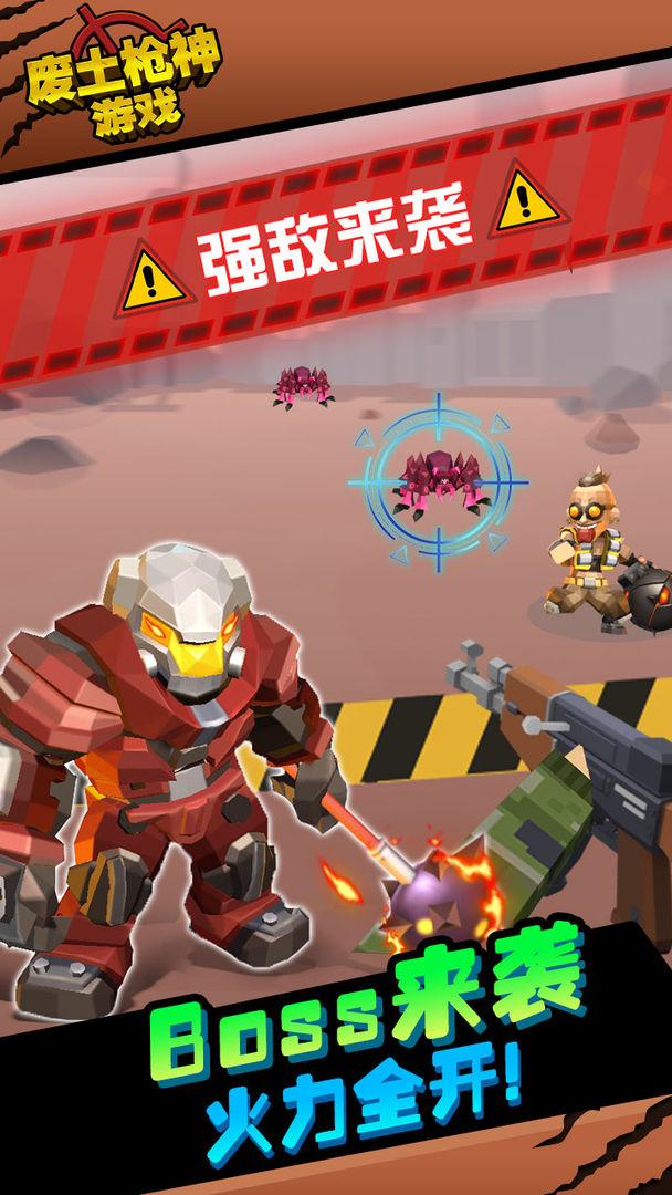 废土枪神游戏是一款画风Q萌的休闲射击小游戏,游戏融合了合成和射击两大玩法,采用竖版的操作方式,并且采用了第一人称的视角,在这里你需要拿起各种武器对敌人展开射击,把敌人全部消灭即可过关,快来试试吧!