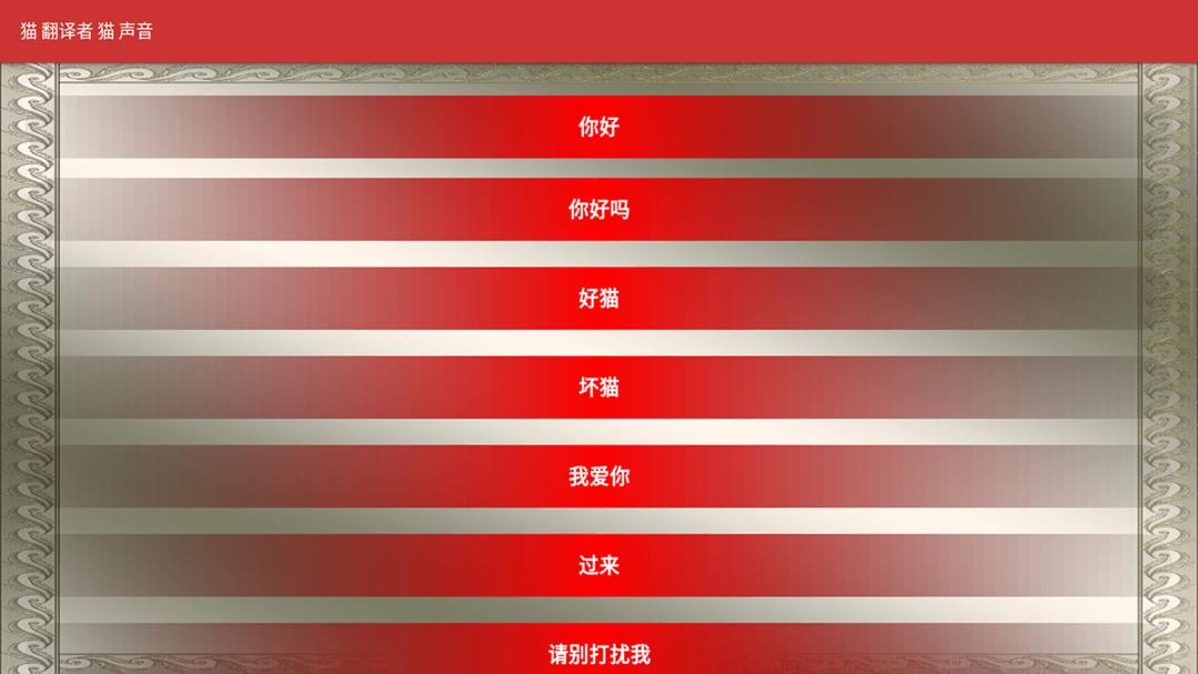 配备猫咪的喵星人语言,比如:委屈、开心、无语、呜咽、去打针、愤怒、发狠等多种有趣的猫叫声,帮您了解猫猫的常用语言,才能了解了它的心情哦!