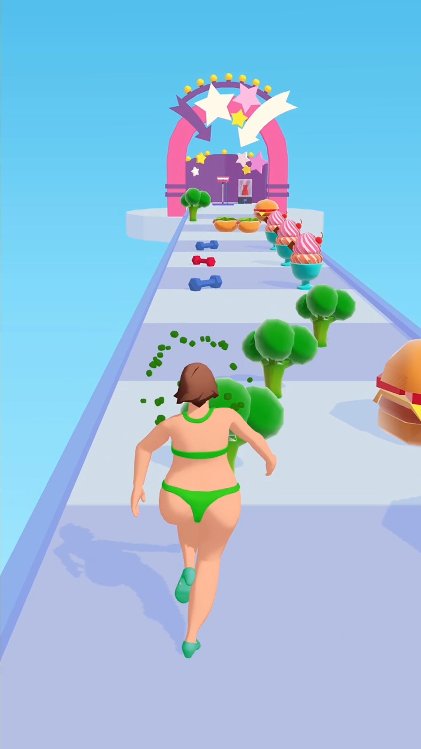 身体竞赛是一款非常励志的游戏,这款游戏采用卡通画风,在游戏中你将扮演一位女性,在赛道上不断的向前跑,在路上也有很多各式各样的诱惑,一不小心你就会吃胖了,也有可能在你不断的坚持,不断的磨练自己意志的过程中,成功减肥,达到完美身材。本游戏已解锁皮肤。快来体验吧!