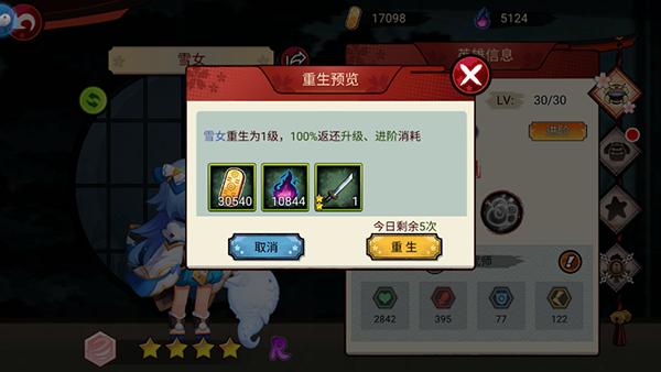 讨伐过程中大人可以先提升当前队伍的实力哦。不用担心消耗了培养资源(金币和英雄经验),每天大人都可以有5次机会进行英雄重生,不用分解原英雄,100%返还升级、进阶的消耗材料,只要各位大人合理分配重生次数,英雄储备和战力提升我们就可以两手抓!