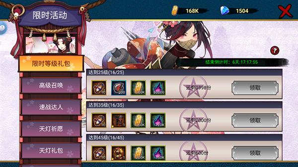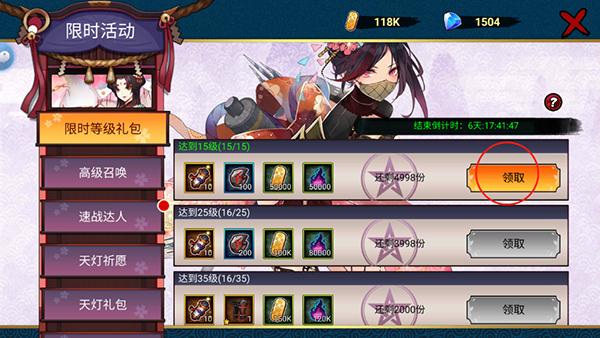 小若子还给大人准备了限定的等级礼包哦,达到相应的等级大人就能领取到奖励了。