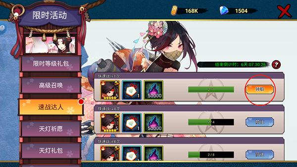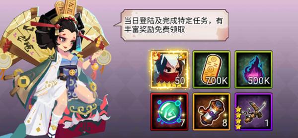 【七日庆典】每日福利处可以领取大量强力4星英雄碎片,福利拿到手软。第二天登录即送5星英雄「封魔小太郎」,第三天登录即送5星英雄「真田幸村」。