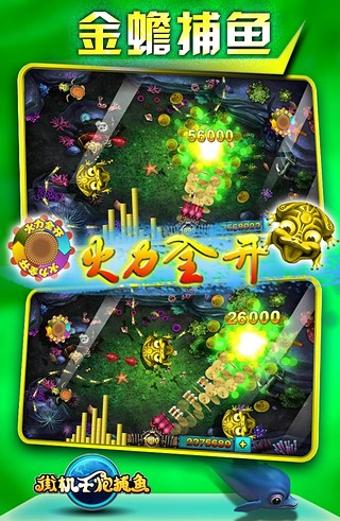 千炮捕鱼手机版一款以捕鱼为题材的街机游戏,100%街机完美移植,金蟾捕鱼、李逵劈鱼、哪吒闹海等30个版本集于一体,想怎么玩就怎么玩。游戏场景采用全3D制作,一起体验捕鱼的刺激。
