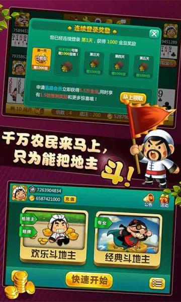 多样玩法,啥叫专业,啥叫流行,来玩马上就知道!经典场&欢乐场,让你体验更多流行的休闲玩法!让我们一起真人斗地主吧!