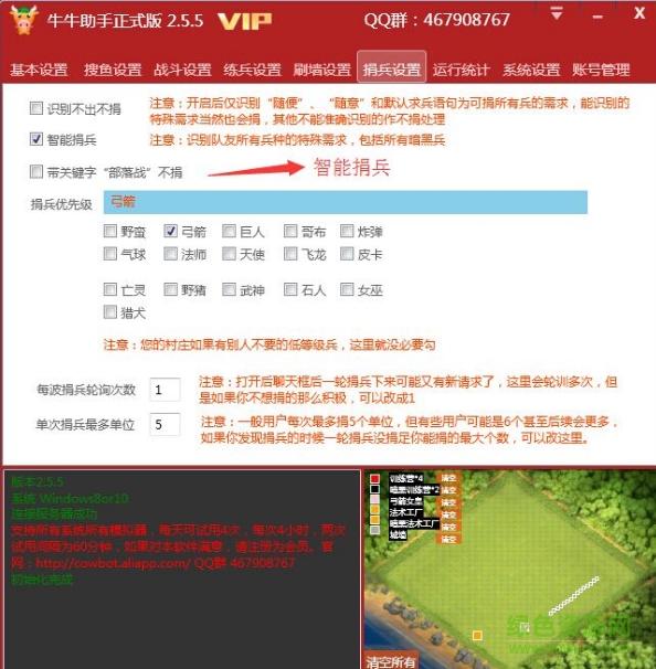 牛牛助手是专门为coc玩家专业打造的一款智能辅助,高效,灵活的战斗策略,让你随心所欲,战斗策略、配置分享下载云服务,让高效策略轻松在握。牛牛助手支持窗口隐藏、智能配兵、智能战斗、自动刷墙、自动加速、高级捕鱼、防御识别、自动布置陷阱,装填药水,只要配置正确,金水每小时轻松120W以上。