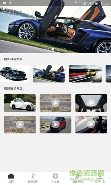 1.0版本,车辆改装介绍、改装实时报价、车友圈、直播专区。