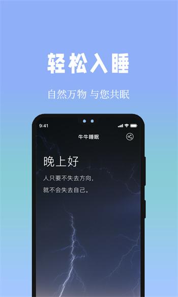 牛牛睡眠是助力于解决失眠、焦虑问题的健康应用。我们为您提供自然万物的声音、ASMR内容、催眠影片,让您忘记烦恼焦虑达到内心的宁静,轻松平和快速入睡。