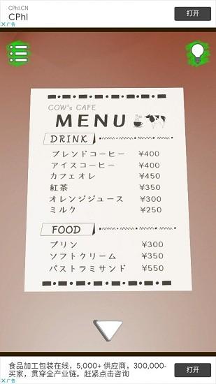 逃出牛牛咖啡厅是款由日本工作室打造的3d逃脱类游戏,你需要逃出的地方是一个可爱的牛牛咖啡厅,因此画面还是比较治愈的,不过谜题还是很难哦,需要找齐各种线索之后,你才能成功逃出!如果感兴趣的话,欢迎来下载!