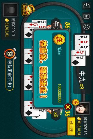 百人牛牛手機遊戲營造了最為綠色安全的遊戲環境,讓遊戲中充滿了歡樂元素,進行了最佳的玩法內容移植,真正的還原了線下棋牌玩法,讓組隊打牌的玩法樂趣更多。
