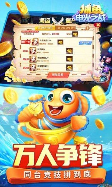 5、大家可以來邊競技、邊交流,體驗有趣玩法,不會有複雜的遊戲操作玩起來更輕鬆,約上親朋好友壹起展開遊戲對戰冒險,簡單的操作方式讓玩家解鎖各類獎勵。电光之战捕鱼手游下载-电光之战捕鱼手游免费下载安装