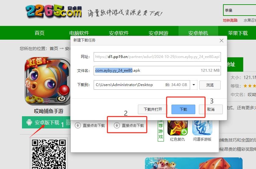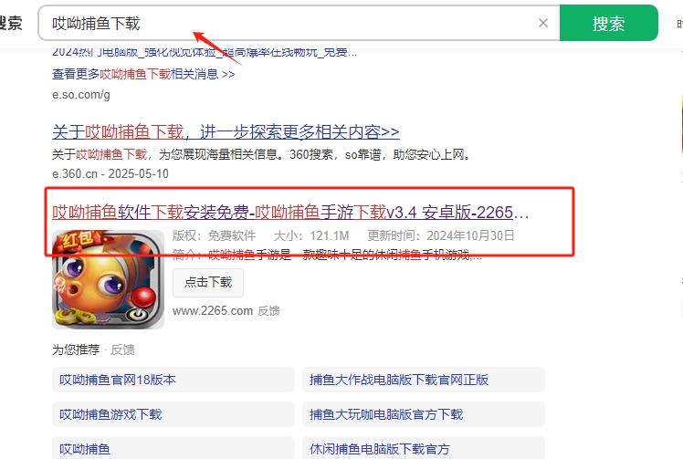 1、在网站上搜索哎呦捕鱼下载,并点击图片标记的链接进去下载。