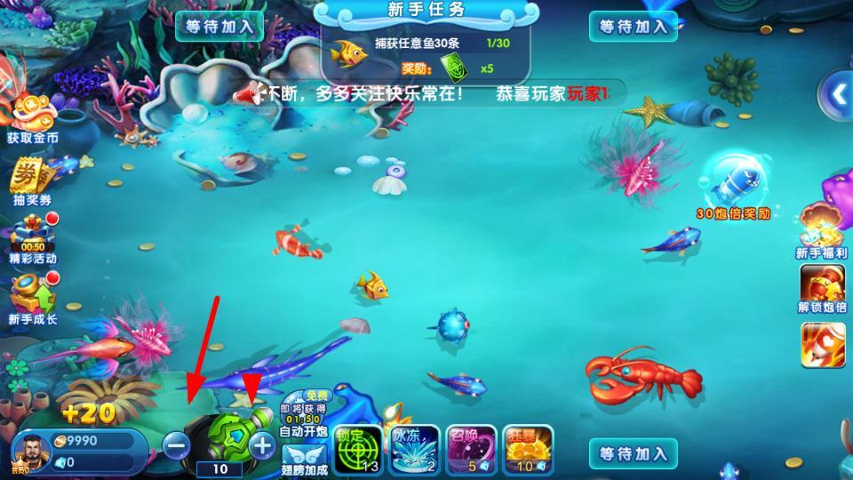 1、捕鱼技巧运用:根据鱼群移动速度调整瞄准提前量,对高分值鱼类集中使用葫芦娃技能,普通鱼群用基础渔网节省能量,平衡收益与消耗。