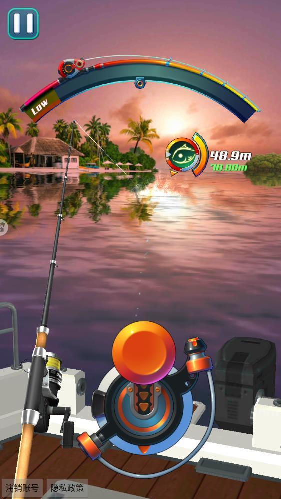 3、收鱼技巧拖拉放开按钮时调整弹力,拖拉越久距离缩短越快,待鱼HP归0或距离为0时,即可成功捕鱼,需平衡操作节奏应对鱼挣扎。