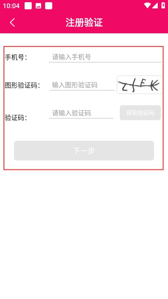 3、在注册验证页填手机号,图形验证码等,点下一步。