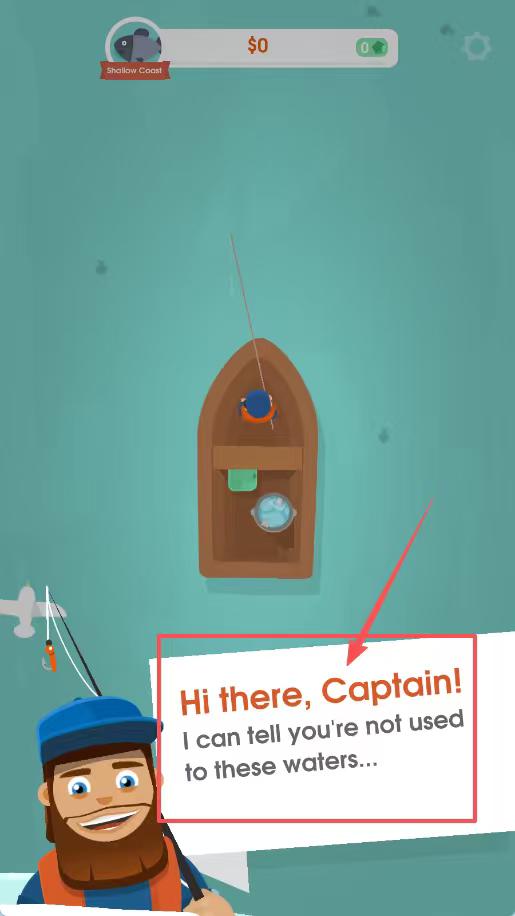 1、点蓝色对话框箭头,准备开启捕鱼冒险。