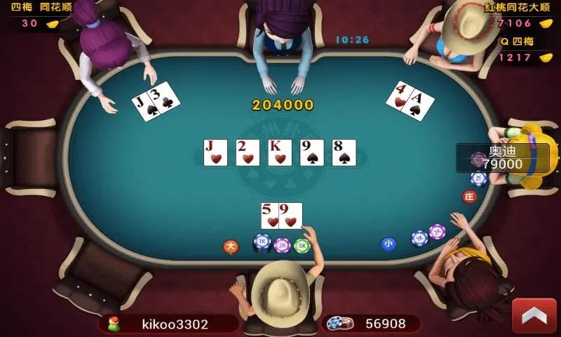德州官方版手游还原最原汁原味的德州扑克竞技体验。游戏提供丰富的福利活动,玩家可随时领取专属奖励。简约而不简单的游戏模式,让您轻松上手经典德州玩法。支持多人在线实时竞技,打造公平公正的游戏环境。无论是单人匹配还是组队开黑,都能享受极致的德州游戏乐趣。官方正版保障,安全可靠,信誉有保证。感兴趣的小伙伴立即下载德州官方手游开启您的扑克竞技之旅,体验心跳加速的刺激对决!
