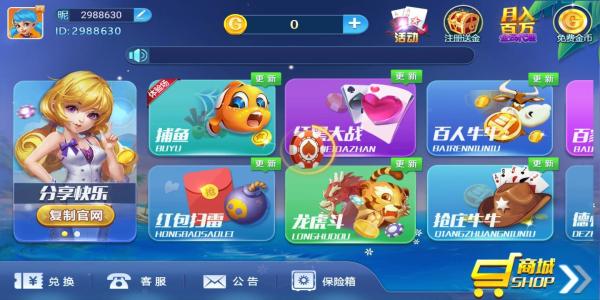 3.各种类型的棋牌游戏,包括斗地主,钓鱼,炸金花等。