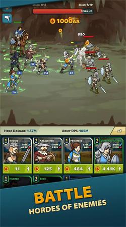 1、自由的去组建出一个属于自己的军团吧,带着你的军队来消灭各种的敌人,击败更多怪物;
