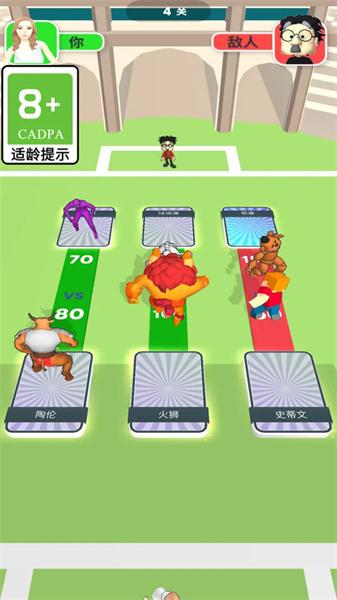 玩家可以通过从关卡中获取的道具升级自己的角色,角色到达一定条件可以进行变身觉醒提升战力;