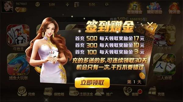 3、同一款游戏包含着多种登录的方式可以使用微信进行登录账号,在游戏中拥有非常多样的趣味棋牌模式玩法来进行选择,完成任务,如邀请好友、开局玩牌、每天下注等,每日登录就可以获得游戏礼包至于礼包里面有什么就需要看你的运气了。